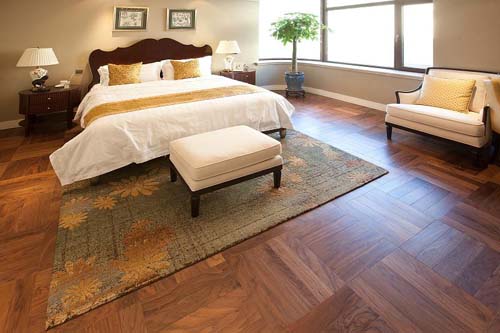地板從里向外鋪裝,從門口到客廳再向房間鋪裝,模擬人入門的走動路線,這樣有一個連續(xù)性。地板拼接之間要留有一定的縫隙,以保證木材的伸縮性。