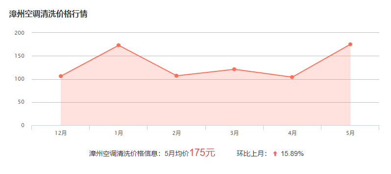 在漳州清洗空調(diào)的收費(fèi)標(biāo)準(zhǔn)一般在60-300元左右,具體的費(fèi)用與空調(diào)的類(lèi)型和型號(hào)有關(guān),具體有師傅了解報(bào)價(jià)!下面為漳州近幾個(gè)月的價(jià)格波動(dòng)圖,可供參考: