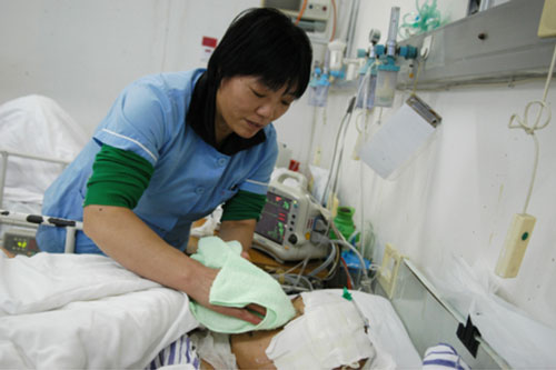 協(xié)助解手,我們知道許多剛做完手術(shù)的病人是不能下地活動(dòng)的,于是在床上需要解手。這時(shí)醫(yī)院護(hù)工的職能就是協(xié)助解手,并清潔局部衛(wèi)生,必要時(shí)幫助病人換洗內(nèi)衣。不怕臟,不怕累才是他們對(duì)護(hù)工行業(yè)的詮釋。
