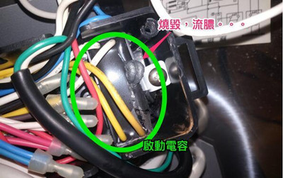 6.重新接回啟動電容,首先接上原來線路,將熱縮管套好位置,把熱縮管烤一下,確實把電線固定,鎖上固定螺絲到控制盒,把控制盒裝回去,其實是可以不用把控制盒拆下來,拆下的原因是啟動電容粘的很死,很難在原固定位置上拔下來,把所有電線整理好,塞回去控制盒內(nèi),然后,插上電源,確定馬達電機是否運轉(zhuǎn)正常。