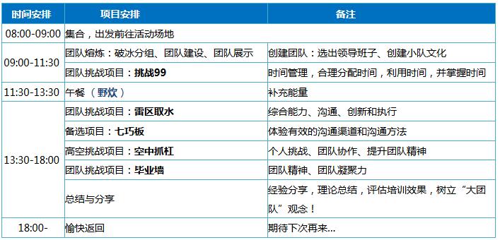 翼學(xué)拓展一天培訓(xùn)流程: