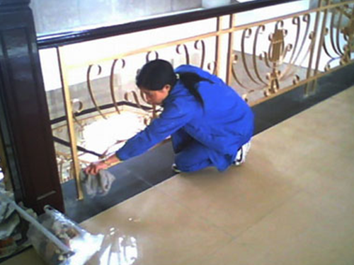 8、地面的清洗:其他所有保潔工作做完以后,就是地面的清洗了,地面也要分材質,是木地板的、還是瓷磚的、或是石材的,當分清后就選擇專用清潔劑稀釋后,開始清洗。地面上的膠漬可用刀片清除,頑固的可用去膠劑處理;最后一道工序做完后,應由領班全面檢查一遍后,確認無遺留后撤離現(xiàn)場。