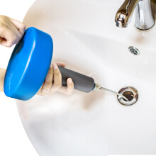 五金店有賣手搖彈簧疏通器,直接將先打開螺絲,將彈簧伸入管道內(nèi),然后向下壓,接著順時針方向旋轉(zhuǎn)搖柄,等到堵塞物取出,再將疏通器或彈簧用力往后拔出,若發(fā)現(xiàn)拔不動時再可逆時針旋轉(zhuǎn)搖柄。