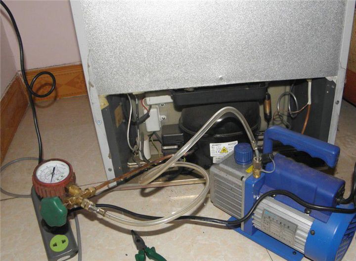 打開冰箱系統(tǒng),檢查壓縮機排氣是否正常,簡單方法是用手指看能否堵住壓縮機排氣口,如果很容積堵住,可判定壓縮機排氣差,如果難以堵住,需要用第二種方法進一步判定。第一種方法是在冷凝器出口接壓力表,檢查排氣壓力是否能高于1.5Mpa且斷電后表針慢慢退回,如果達不到1.5Mpa,甚至達不到1.5Mpa,則可判定是壓縮機排氣不足,如果表針快速回退說明壓縮機串氣。