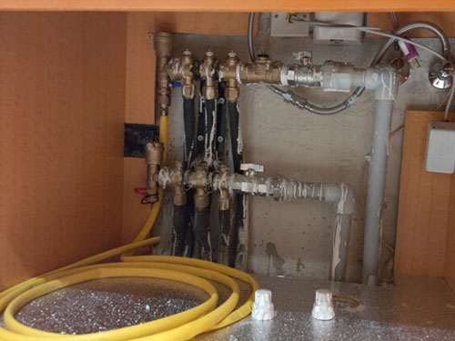 2、準(zhǔn)備工作完畢后,可先打開(kāi)地暖熱水進(jìn)口管。