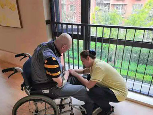 5、定時喂藥,給老人進行健康和康復按摩。