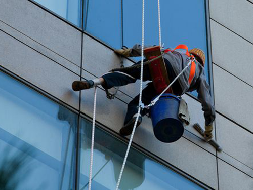 外墻清洗分為吊板方式和擦窗方式。吊板方式是用吊繩、吊板將人吊到工作位置進(jìn)行清洗。這種型式比較簡單,成本也低,只要工人身體素質(zhì)好、繩子連接牢固就可以進(jìn)行。一般的大樓都可以用這種方式進(jìn)行清洗,但是這種方式的操作必須使安全措施到位,否則危險(xiǎn)性很大,造成傷亡事故的都是因安全措施不到位造成的。