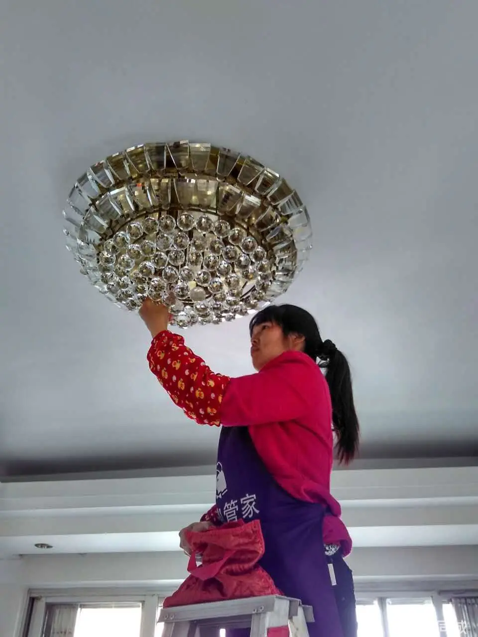 1、如果是新的水晶燈使用一段時間后表面不會特別臟,只是燈上面覆蓋了一層灰,基本上沒有很難去除的污漬,所以清洗方法很簡單,大家直接用布沾點水擦洗。在這種情況下,清洗師傅無需拆卸吊燈,只需移動梯子或站在高腳凳上,用干凈的軟棉布輕輕擦拭就好了。