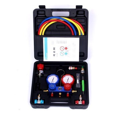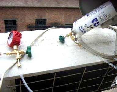 3、空調(diào)設(shè)定制冷模式,并啟動運(yùn)轉(zhuǎn)。倒置氟制冷劑鋼瓶,開啟瓶閥,讓制冷劑由低壓閥處吸入空調(diào)系統(tǒng),控制加液表伐,加液不要太急,(夏季低壓壓力不要超過0.4-0.5MPa)完成加雪種操作。加液后讓空調(diào)運(yùn)轉(zhuǎn)一段時間,觀察其連接管的溫度,粗管溫度應(yīng)比細(xì)管低,并能大量結(jié)露為加液合適。當(dāng)然也可檢查電流等指標(biāo)。