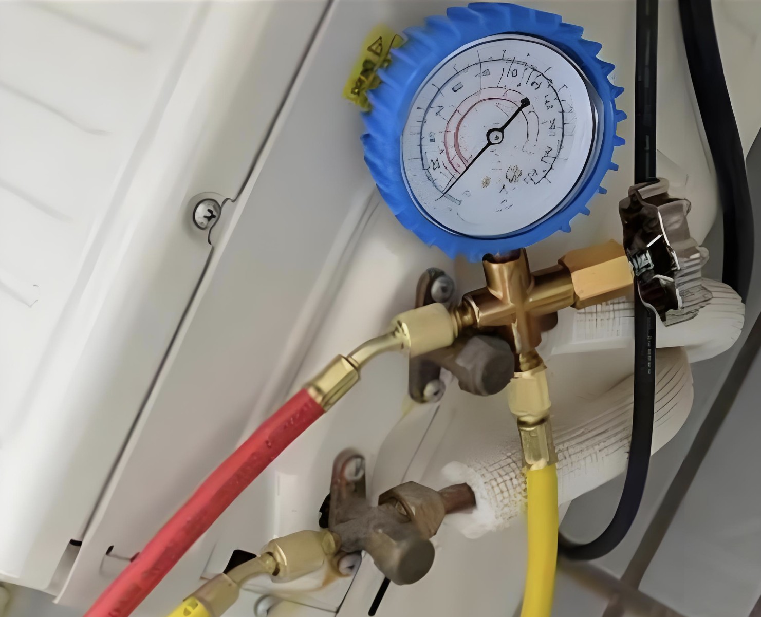1、加一定量的氟利昂:在三通截止閥口連接三通閥,壓力表,加氟里昂軟管或正空泵等。放掉原來(lái)剩余的氟利昂,抽為真空,然后開始慢慢加氟里昂。用較精確的稱量工具承重,當(dāng)氟利昂瓶子中減少的氟利昂等于你空調(diào)說(shuō)明書上所注明的標(biāo)準(zhǔn)加氟里昂量時(shí),關(guān)閉氟利昂瓶閥門。